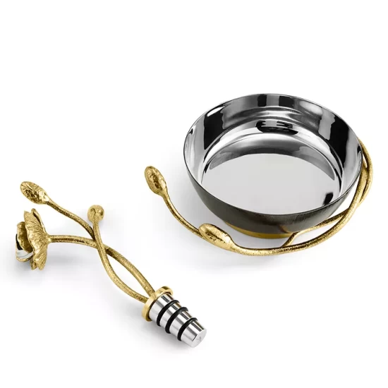 - Set includes: a wine bottle coaster and bottle stopper