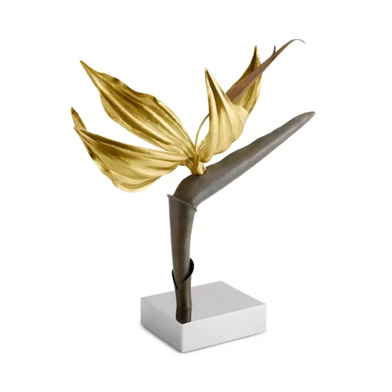 - ‘The bird of paradise unfurls a dazzling bloom, resembling a magnificent bird taking flight. This flower lends itself naturally to a sculptural interpretation. Its innate geometry, audacious plumes and exotic form are truly unique.