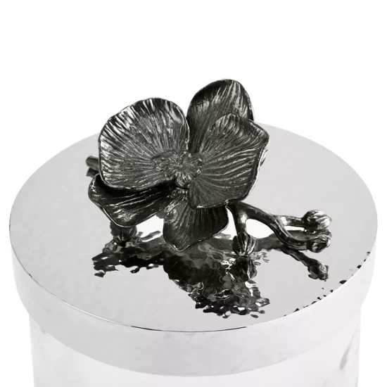 By interpreting plant forms in cast metal, Aram presents work which is evocative of a natural environment. Says the designer, “This collection was really born out of the sense I have of haute couture. There is a velvety luxury โ an almost gothic quality โ to representing orchids in blackened nickel. To me, the pieces feel seductive and graceful, yet dark and unexpected.”