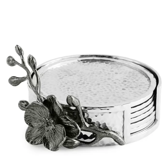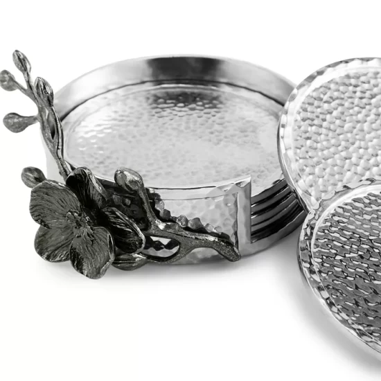 - Each coaster is 3.75″; caddy is 4.25″ X 4,5″ X 2.75″ H