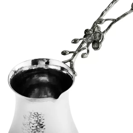 A bright nickelplate finish enliven’s Michael Aram’s sculptural botanical-influenced collection. Each piece is decorated with blooming orchid designs rendered in fine, delicate detail.