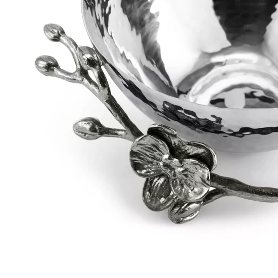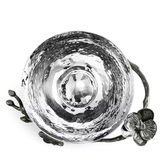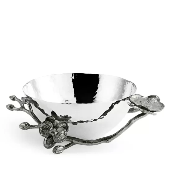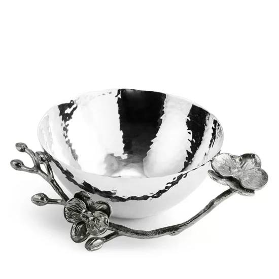 By interpreting plant forms in cast metal, Michael Aram presents work which is evocative of a natural environment transformed and redefined. Says the designer, “There is a velvety luxuryβan almost gothic quality β to representing orchids in blackened nickel. To me, the pieces feel seductive and graceful, yet dark and unexpected.”