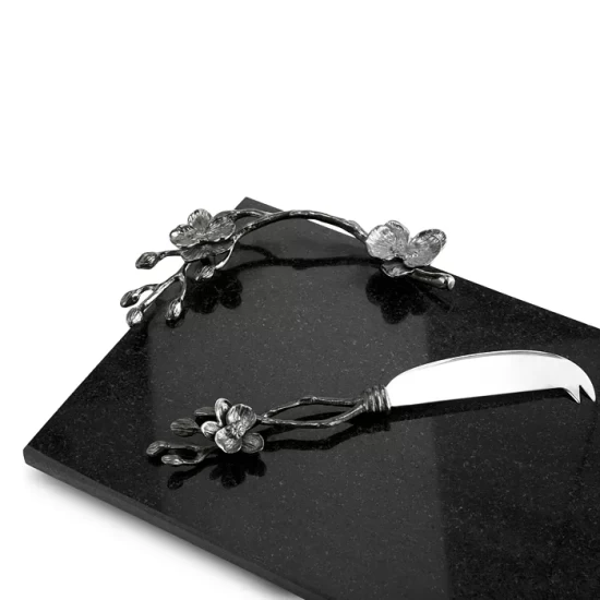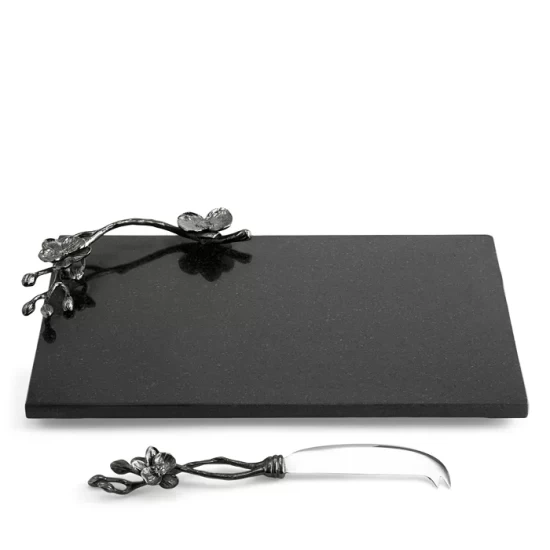 - Cheesboard is 8.25″ x 12.5″; knife is 8.5″ long