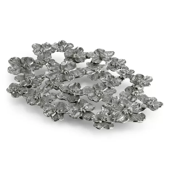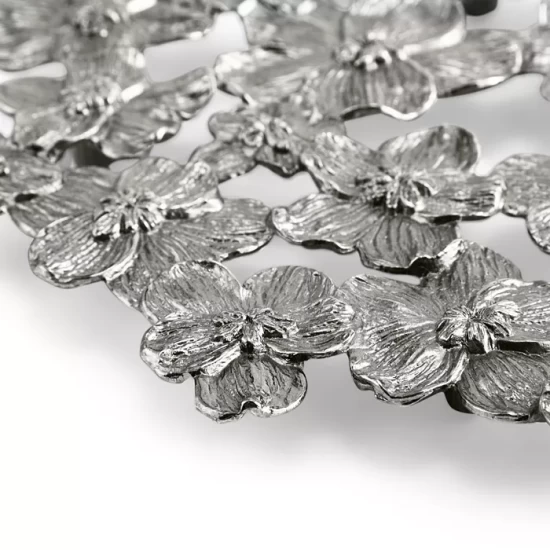By interpreting plant forms in cast metal, Michael Aram presents work which is evocative of a natural environment transformed and redefined. Says the designer, “There is a velvety luxuryβan almost gothic quality β to representing orchids in blackened nickel. To me, the pieces feel seductive and graceful, yet dark and unexpected.”