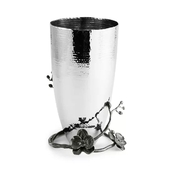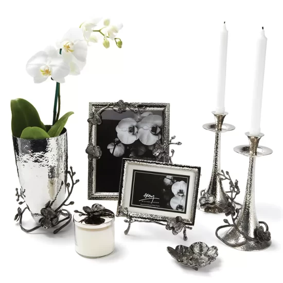 By interpreting plant forms in cast metal, Michael Aram presents work which is evocative of a natural environment transformed and redefined. Says the designer, “There is a velvety luxuryβan almost gothic quality β to representing orchids in blackened nickel. To me, the pieces feel seductive and graceful, yet dark and unexpected.”