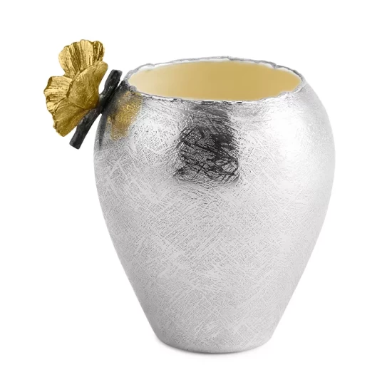 A work of art perfectly sized for a single flower, Michael Aram’s stunning bud vase is carefully formed by hand from acid-etched solid bronze and stainless steel.