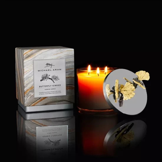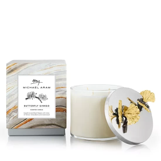 Known for its delicate leaves that resemble butterflies at rest before taking flight, the gingko biloba tree was the muse behind Michael Aram’s sculptural, handcrafted Butterfly Ginkgo candle. A crisply fresh scent creates an indulgent escape.