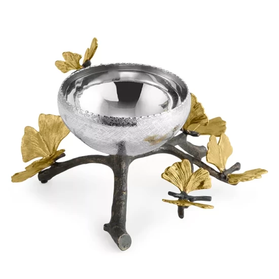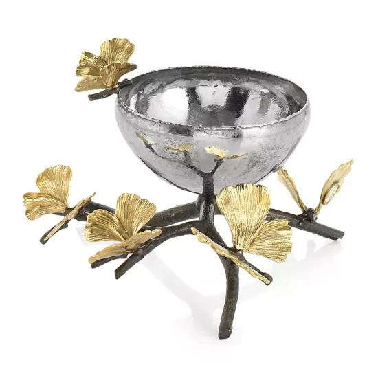 Known for its delicate leaves that resemble butterflies at rest before taking flight, the gingko biloba tree was the muse behind Michael Aram’s sculptural Butterfly Ginkgo Collection. Each piece is rendered by hand in solid bronze and nickelplate with artfully etched details.
