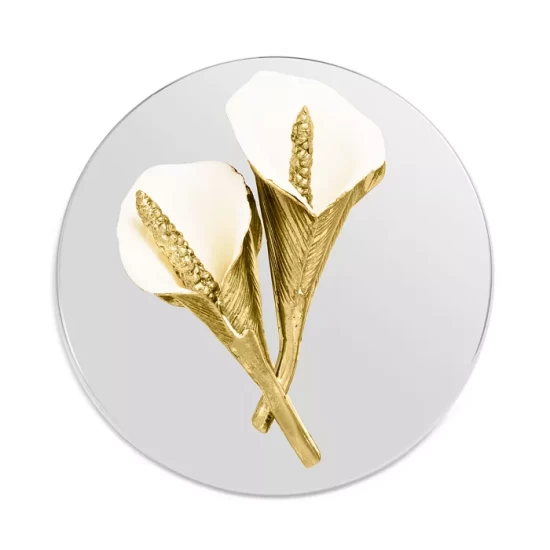 Inspired by the purity and innocence of the calla lily flower, this romantic collection is highlighted by delicate handcrafted blossoms juxtaposed by lustrous metal backdrops.