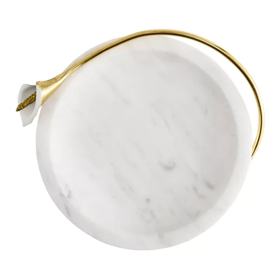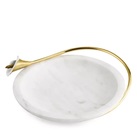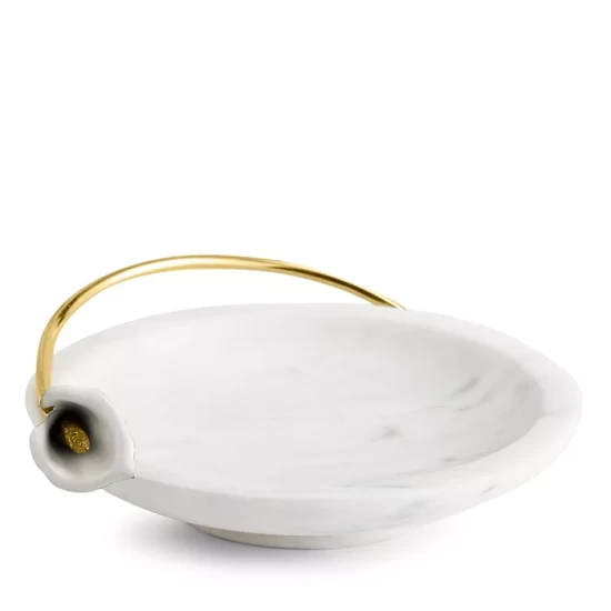 Inspired by the purity and innocence of the calla lily flower, this romantic collection is highlighted by delicate handcrafted blossoms juxtaposed by a rich marble backdrop.