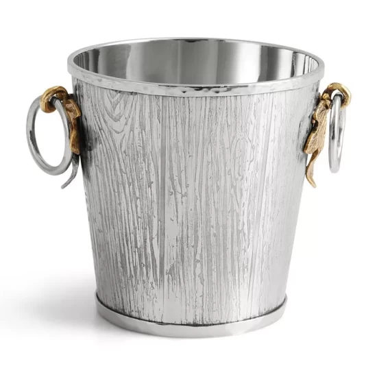 - Etched metal features ring handles accented with winding cast ivy