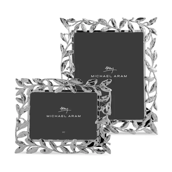 Inspired by the beauty and movement of curved leaves and bowing branches, Michael Aram’s Laurel picture frame collection features a sculptural leaf design that exudes elegance.