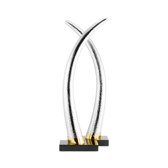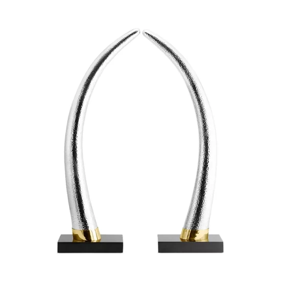 - “The ornamental tusk has been a mainstay of interior decor for decades. Here, I’ve interpreted the motif with hand-hammered modern metals, accented with brass and granite.” – Michael Aram