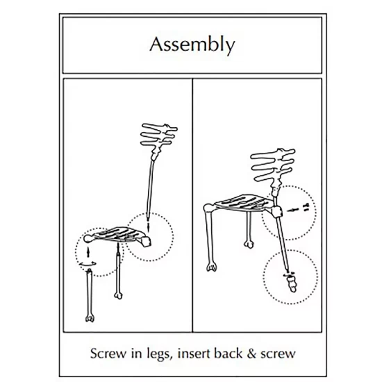 - To assemble: screw in legs, insert back and screw