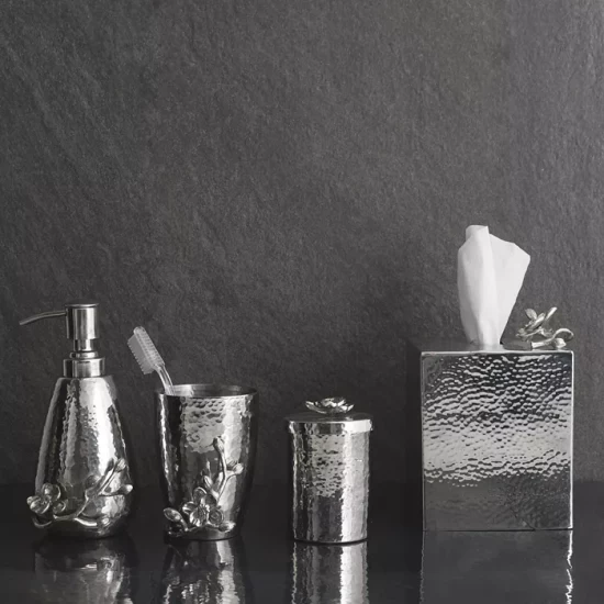 Pairing the beauty and femininity of the orchid flower with the modern appeal of sculpted stainless steel, the White Orchid bath accessories collection by Michael Aram is meticulously detailed for a luxurious look and feel.