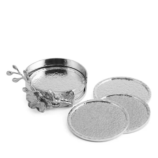 A bright nickelplate finish enliven’s Michael Aram’s sculptural botanical-influenced collection. Each piece is decorated with blooming orchid designs rendered in fine, delicate detail.