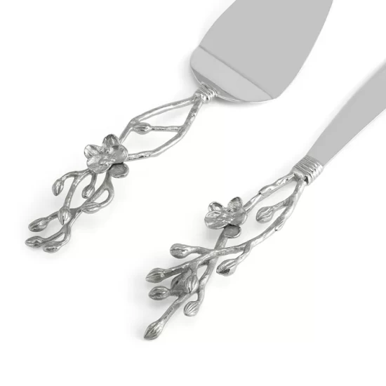 A sculptural silhouette pairs with expert craftsmanship in this striking set from Michael Aram. Inspired by femininity and grace, delicate orchid details create a truly unique statement for your tabletop.